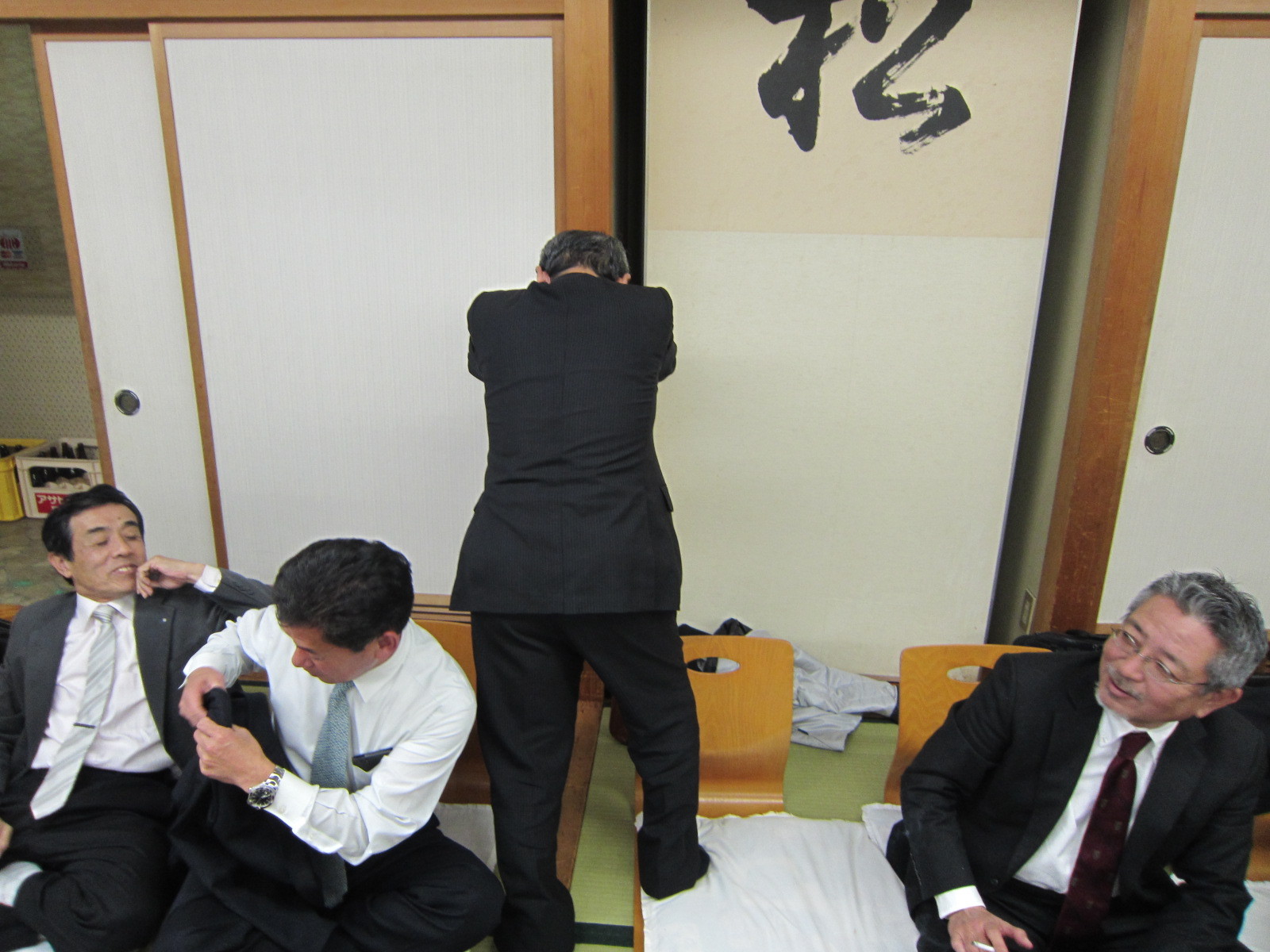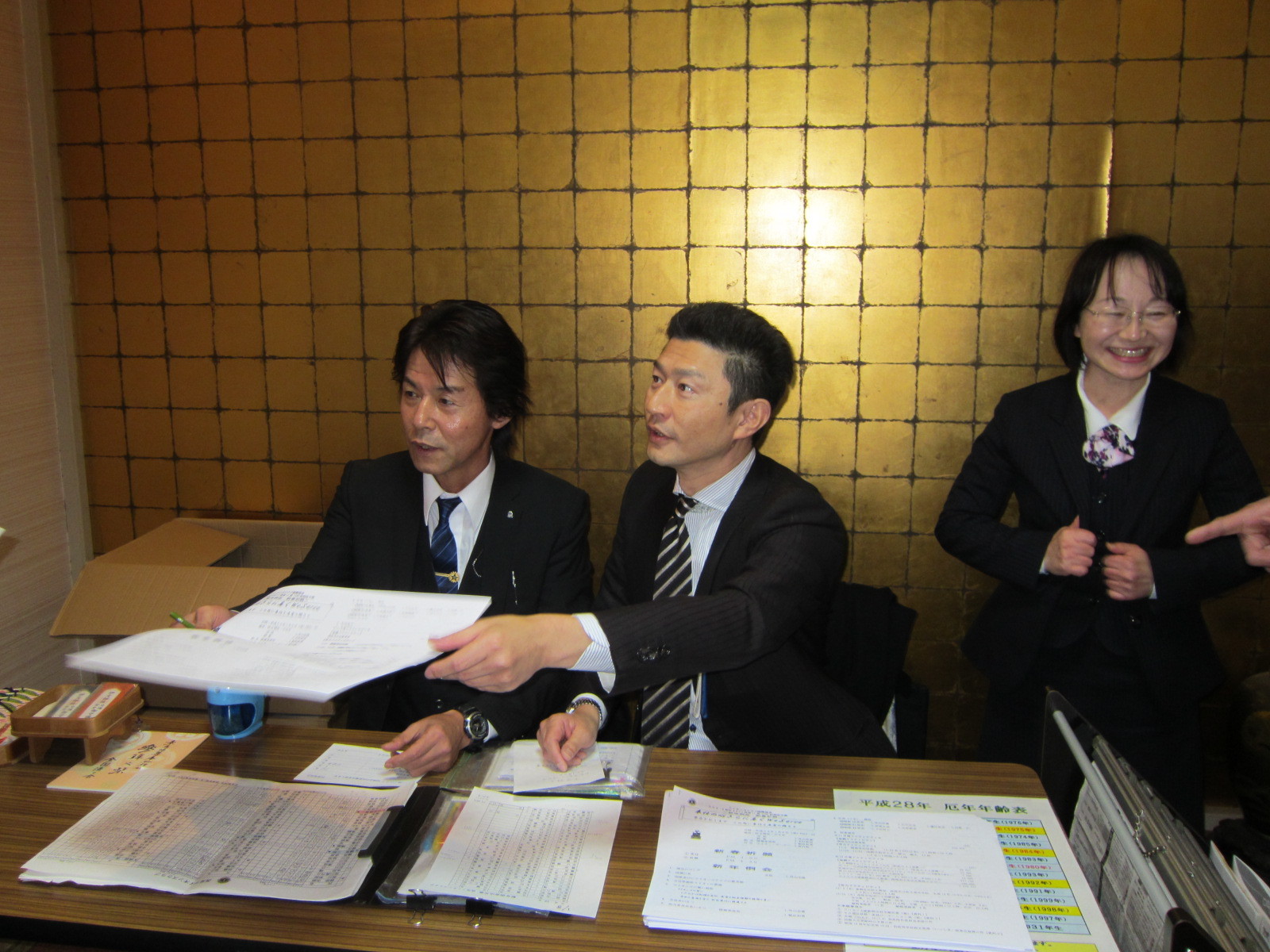 受付をする出席委員長のL江崎昭二、副委員長のL小島正志。